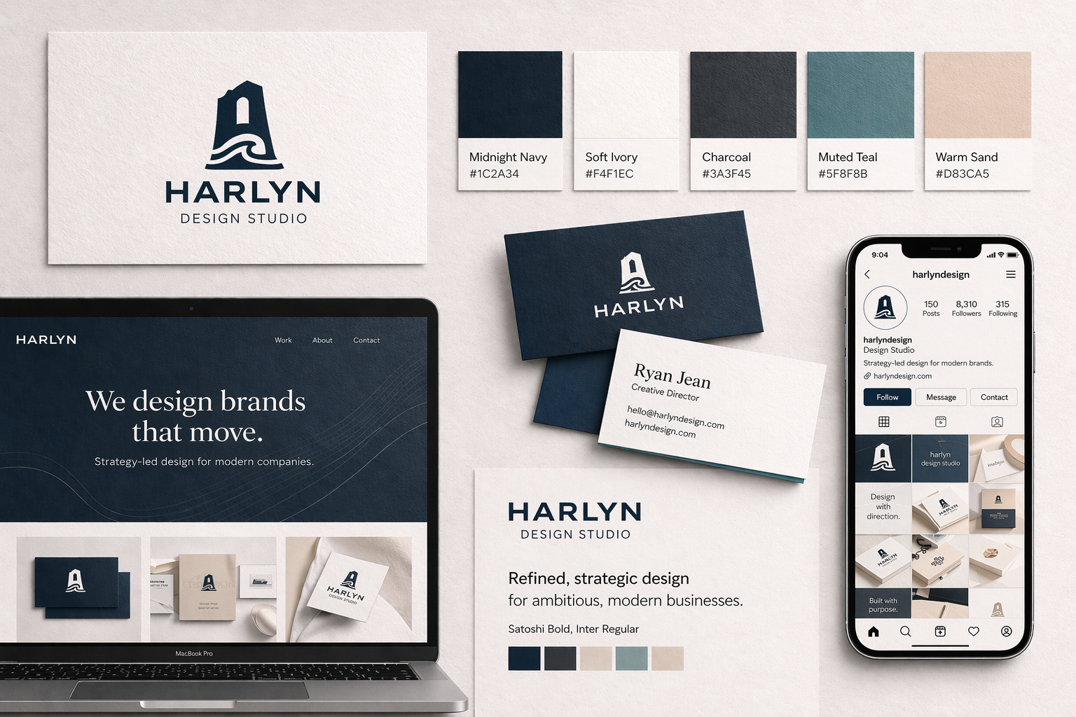 HARLYN DESIGN STUDIO is a creative studio specialising in branding, design, and digital experiences that help businesses stand out with clarity and purpose. We partner with ambitious brands to create thoughtful, cohesive identities built to connect, grow, and endure.